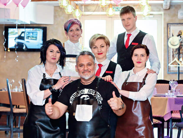 Славиш Карабашевич с родными и сотрудниками ресторана