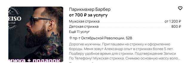 Парикмахерская услуга для мужчин в среднем стоит 700 руб. Мужская стрижка – 1200 руб.