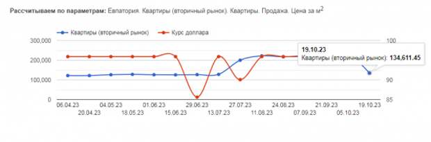 В октябре текущего года средняя стоимость квадратного метра жилья в Евпатории составляет 134 611, 45 руб.